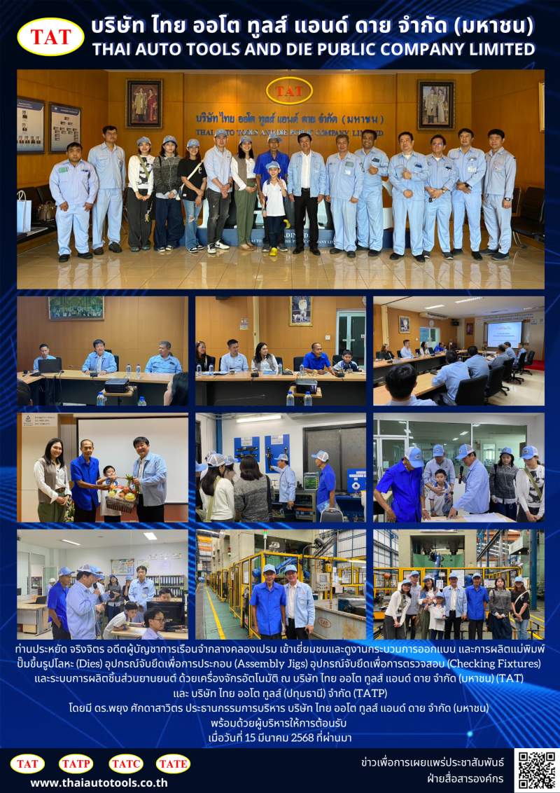 บริษัท ไทย ออโต ทูลส์ แอนด์ ดาย จำกัด (มหาชน) พร้อมด้วยผู้บริหารให้การต้อนรับ เมื่อวันที่ 15 มีนาคม 2568 ที่ผ่านมา