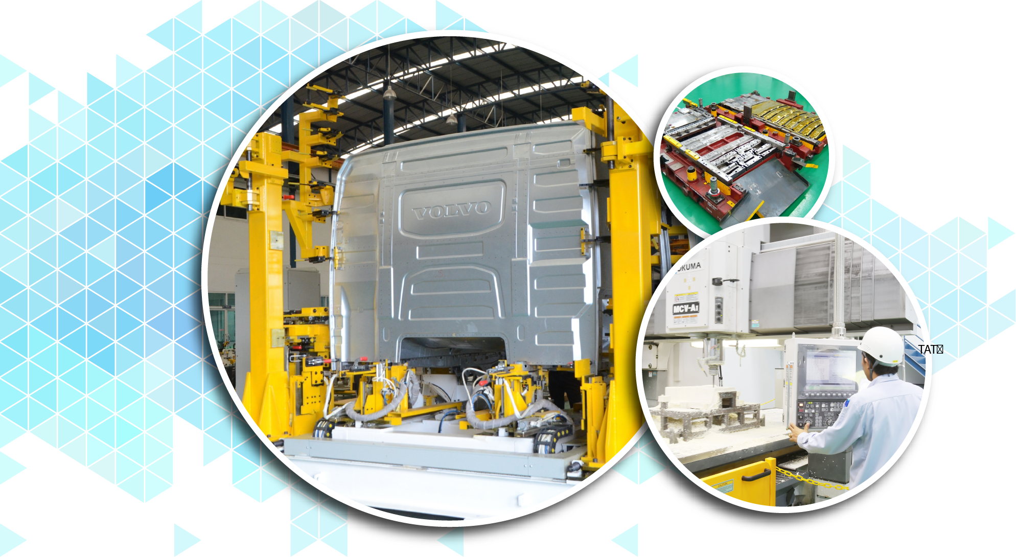 Thai Auto Tools (Pathumthani) Company Limited (TATP) is a subsidiary of Thai Auto Tools and Die Public Company Limited, holding 97% of shares. Founded in 2011, the company is in charge of the business of designing metal dies, checking fixtures, and assembly jigs. With experience and advanced production knowledge of a team of skilled engineers and technicians, investing in high-performance machinery technology controlled by the latest computer system, investing in 3D computer programs and simulation systems, every piece of work produced by the company therefore meets international standards and has high production quality comparable to Japanese manufacturers, that is high quality, reasonable cost, timely delivery, and can be used effectively in real life, which is strong, precise and highly safe.