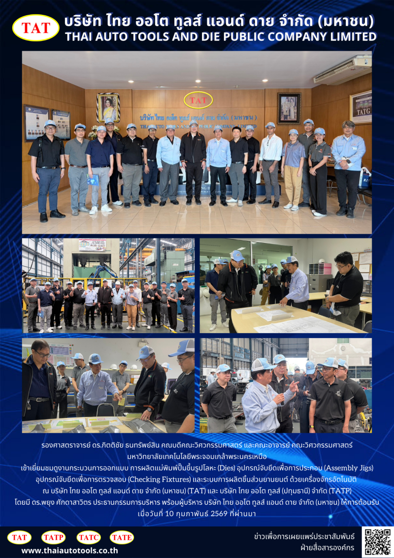 โดยมี ดร.พยุง ศักดาสาวิตร ประธานกรรมการบริหาร พร้อมผู้บริหาร บริษัท ไทย ออโต ทูลส์ แอนด์ ดาย จำกัด (มหาชน) ให้การต้อนรับ